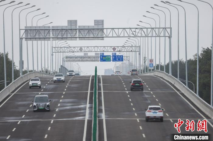 7月5日,京密路(太阳宫北街-机场南线)道路工程完工通车,这是继机场高速、京承高速之后,北京又增添一条东北方向的交通大动脉。 中新社记者 贾天勇 摄