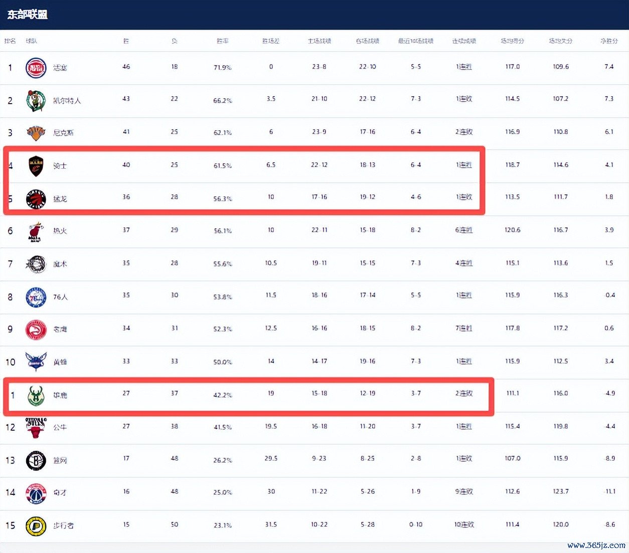 东部方面,绿军虽然输球,但依旧名列第二的位置。猛龙队输给了火箭队,目前排名第5,战绩和热火相当。76人残阵取胜,击败了灰熊队,避免掉入附加赛区,依旧排名东部第8的位置。太阳队则是客场129-114大胜雄鹿队,这样太阳稳居西部第7,而雄鹿队表现就很糟糕了,仅仅位列东部第11,连附加赛都没能挤进去。