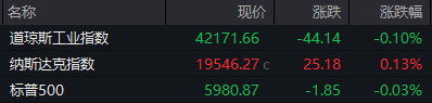 周三美股涨跌互现,市场消化美联储最新决议,并关注持续紧张的中东局势。截至收盘,道指跌44.14点,跌幅0.10%,报42171.66点,纳指涨0.13%,报19546.27点,标普500指数跌0.03%,报5980.87点。美国股市周四因六月节假期休市。
