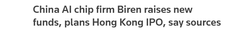路透社引述知情人士报道,内地人工智能(AI)芯片制造商壁仞科技(Biren)完成最新一轮融资,并计划在香港上市。