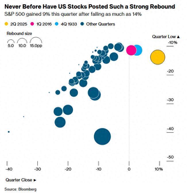 智通财经APP获悉,从三个月前险些跌入熊市,到如今距离历史高位仅差一步之遥,美股这轮反弹堪称历史性。在过去的100年里,标普500指数在同一季度内下跌10%后又成功反弹的情况只有三次,本轮反弹便是其中之一。不同的是深金优配,2016年和1933年的两次快速反弹最终仅实现小幅上涨,但本季度的标普500指数预计将上涨近10%。
