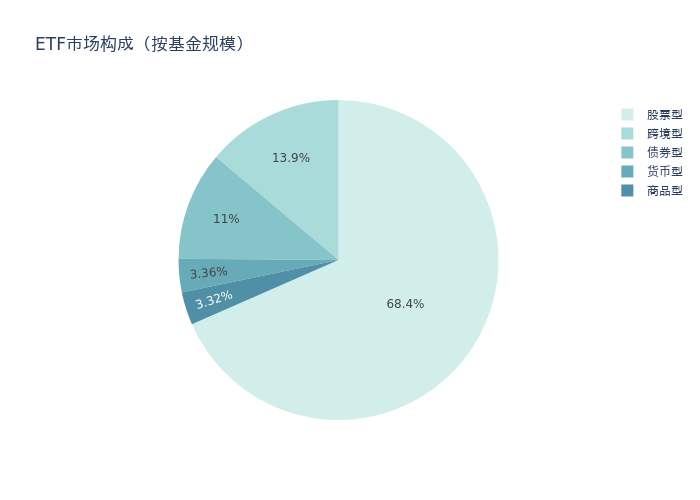 上周市场上存量ETF共计1230只,其中股票型ETF987只,债券型ETF39只,货币型ETF27只,商品型ETF17只,跨境型ETF160只。